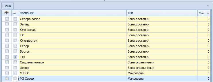 Откроется таблица со списком созданных или импортированных зон в выбранном офисе. В рамках одного офиса, список зон один для всех групп.