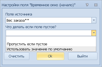 Внимание: Например, в Вашем файле нет заполненного поля «Масса заказа» и Вы хотите подставить всем задачам одинаковое значение по умолчанию. Щелкните по полю «Масса заказа» и заполните диалог как показано на рисунке.