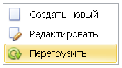 На инструментальной панели ресурса "Группа", активны три функциональных кнопки: Создать новый, Редактировать и Перегрузить. В контекстном меню продублированы те же функции.