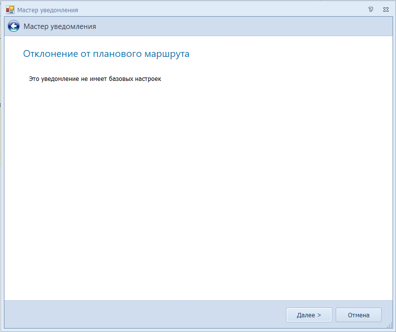 Данное уведомление на настояшее время не имеет базовых настроек. Можно сразу нажать кнопку "Далее" и перейти к шагу "Действия",